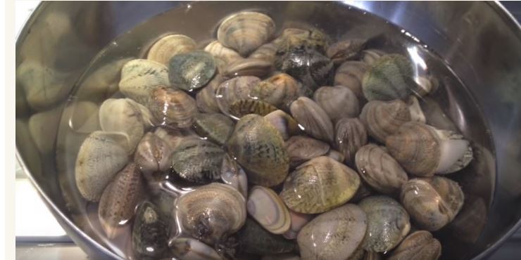Raccogliere i molluschi dalla spiaggia. Attenzione: per la riuscita del piatto è importante farlo subito dopo che l’onda del Mito si è ritratta, attratta dai campi magnetici delle maree.